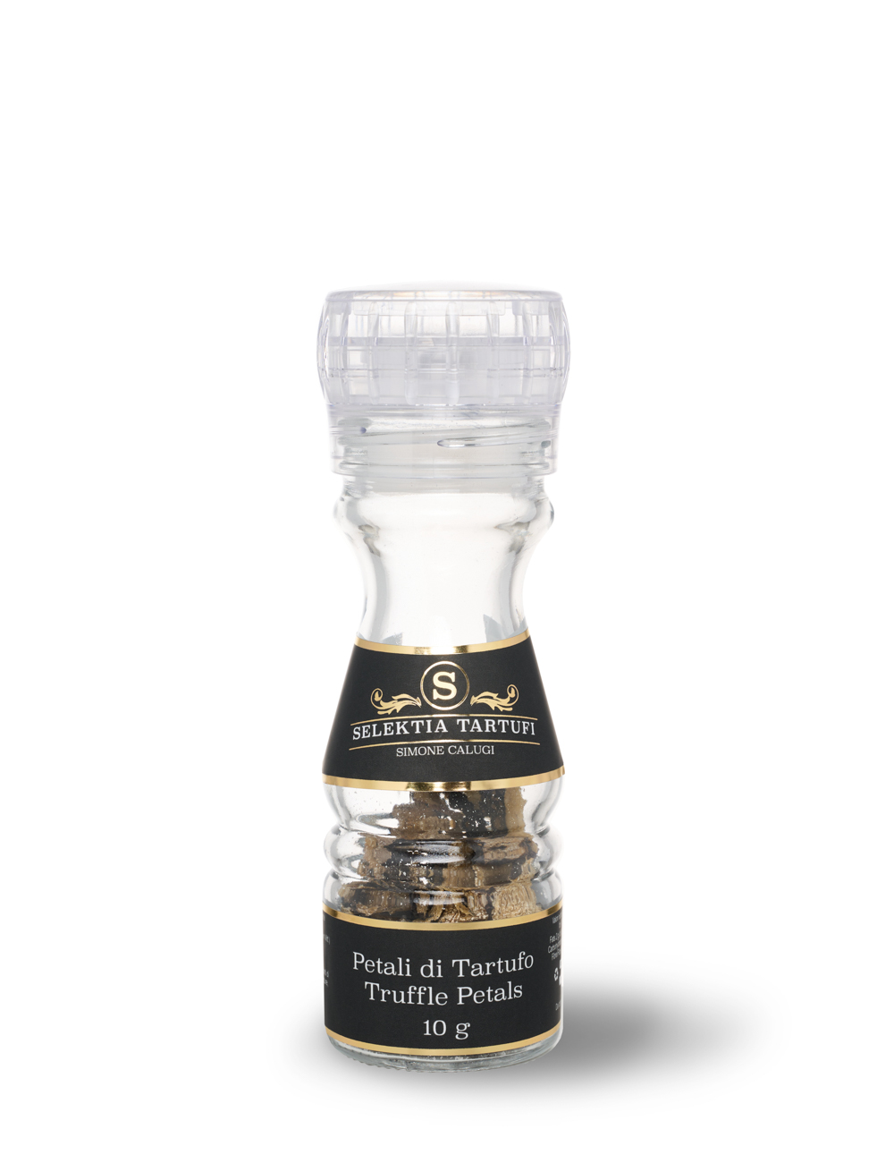 Elegant and pactical clear grinder to show during meals or to give it as a present. Inside it freeze-dried Summer truffle (Tuber aestivum Vitt.) granules. It is recommended to use the truffle in it on top of every kind of dishes, especially on eggs, pasta, or meat.