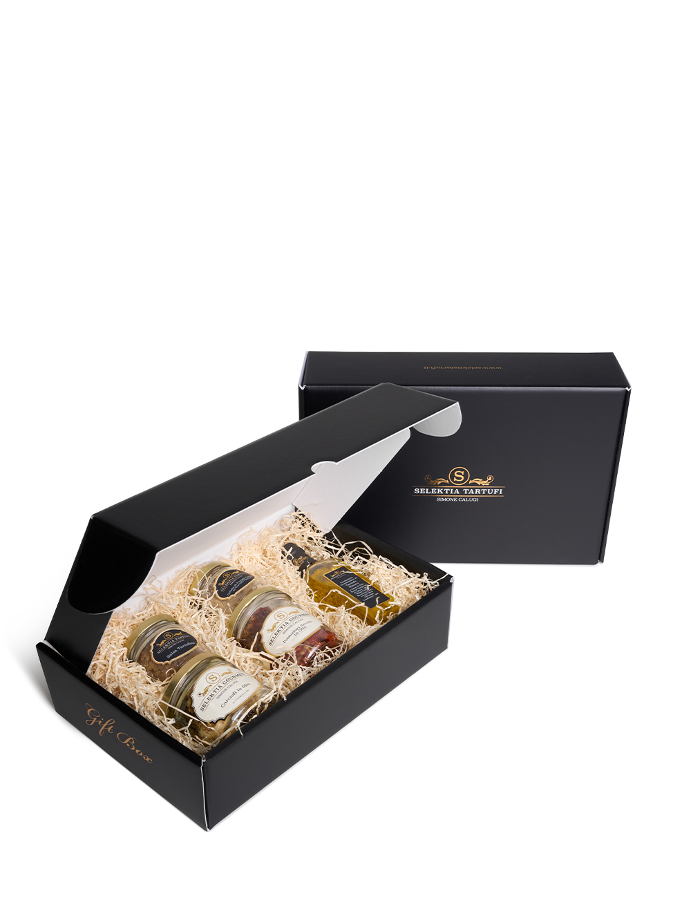 Porcini mushroom and white truffle delicacy: Energy kJ 970 kcal 235 – Fat g 23,8 of which saturates g 2,8 – Carbohydrate g 1,2 of which sugars g 0,9 – Fiber g 2,0 – Protein g 3,0 – Salt g 0,35